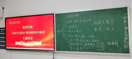 近日,数理学院组织全体辅导员与学业导师深入各班级,召开“班级学风建设+国庆期间安全教育”双主题班会,为学生成长成才筑牢思想根基与安全防线。