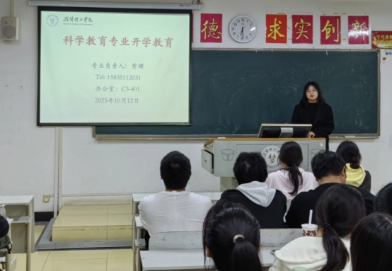 黄珊老师聚焦“科学教育”专业,从专业内涵、课程结构到职业发展方向进行了系统讲解。她指出,该专业融合教育理论与科学实践,致力于培养复合型科学教育人才。针对新生普遍关心的问题,黄老师耐心细致地一一解答,并建议同学们结合个人兴趣与特长,科学设定学业与职业目标,稳步前行。