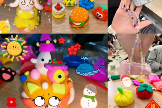 活动设置手工拼豆、手链制作、粘土创作三大趣味板块:手工拼豆区里,同学们或对照图案细致排布各色拼豆,从卡通形象到简约纹样尽显专注,或大胆发挥想象自由组合色彩形状,创作出独一无二的设计,当作品经熨烫成立体模样时,创作的喜悦在拍照分享中满溢;手链制作区中,同学们围坐挑选心仪珠子丝线,或专注穿针引线按规律串联出精致手链,或互相交流想法为同伴出谋划策,偶尔“手忙脚乱”的模样伴随着阵阵欢声笑语;粘土创作区域内,同学们通过捏、揉、搓、压,让柔软粘土“诞生”出憨态可掬的小熊、圆润可爱的多肉植物、惟妙惟肖的卡通人物,更有同学将粘土与身边小物件创意结合,制作出创意十足的摆件,温馨画面格外动人。