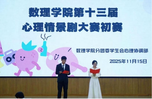 11月15日,数理学院“第十三届心理情景大赛”初赛在医学部学术报告厅成功举办。活动由肖子煜、祝甘霖主持。辅导员岳耀闯指导并担任评委。